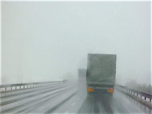 Eilen alkoi sataa lunta ja räntää ja sitä tulikin sitten koko päivä. Heti Baltian tielle tullessa loppui pullosta kaasu, ja täällä on kylmä kuin mikä. Lehmät seisoo pellolla apaattisen oloisina eikä Ladoja näy.